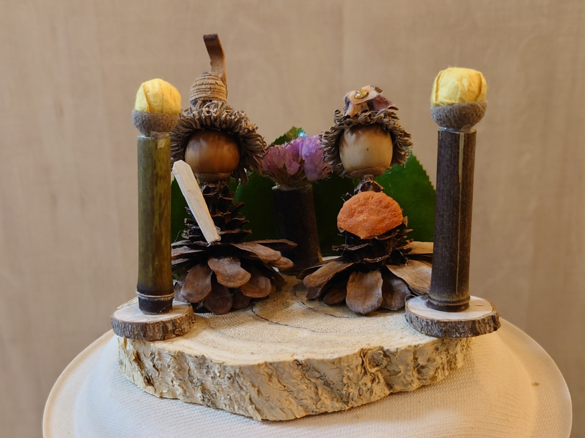 まつぼっくりやどんぐりを使って、自然素材のおひなさまを作ります。