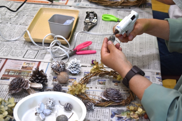 森の蔦や木の実などを使って、夏らしいリースをつくります
